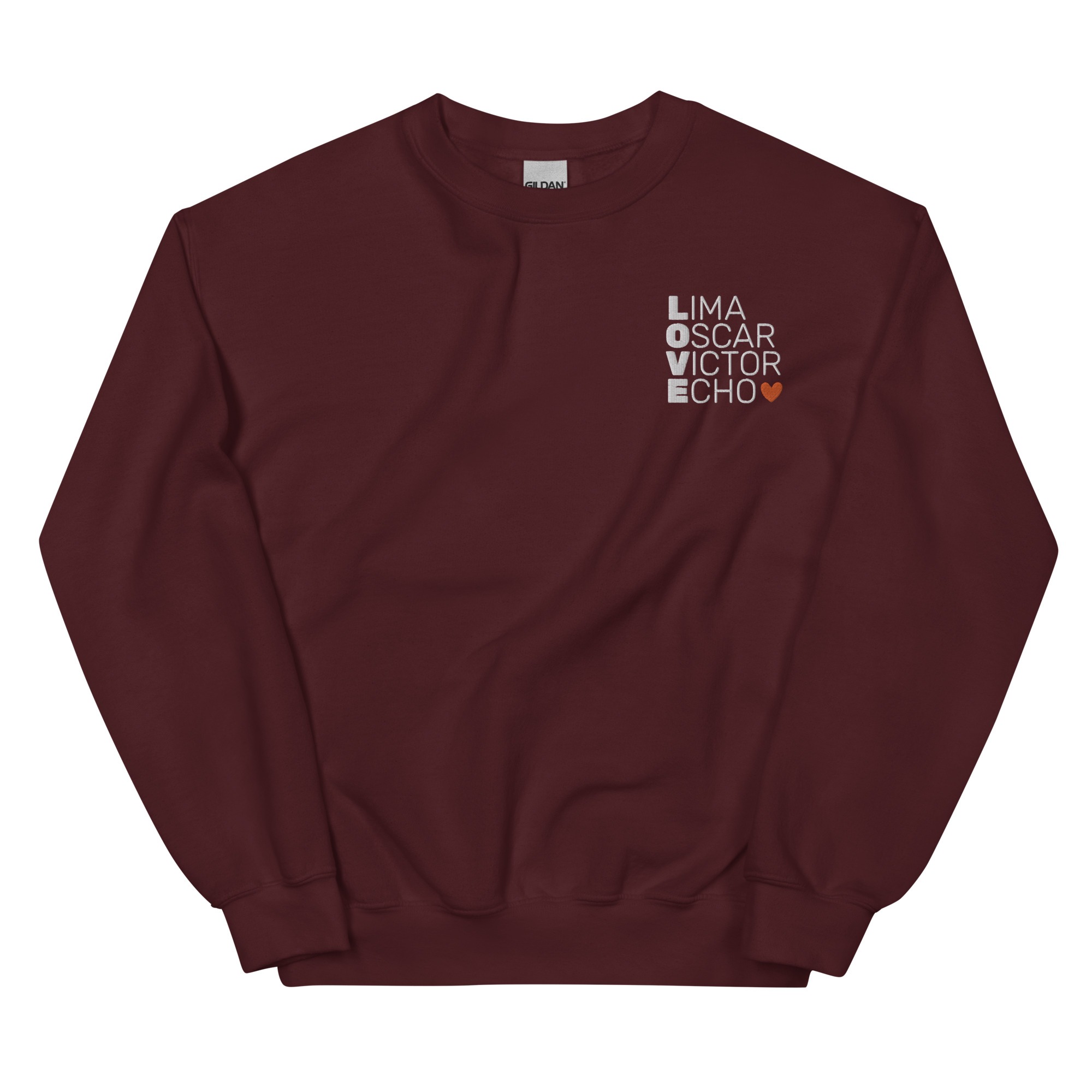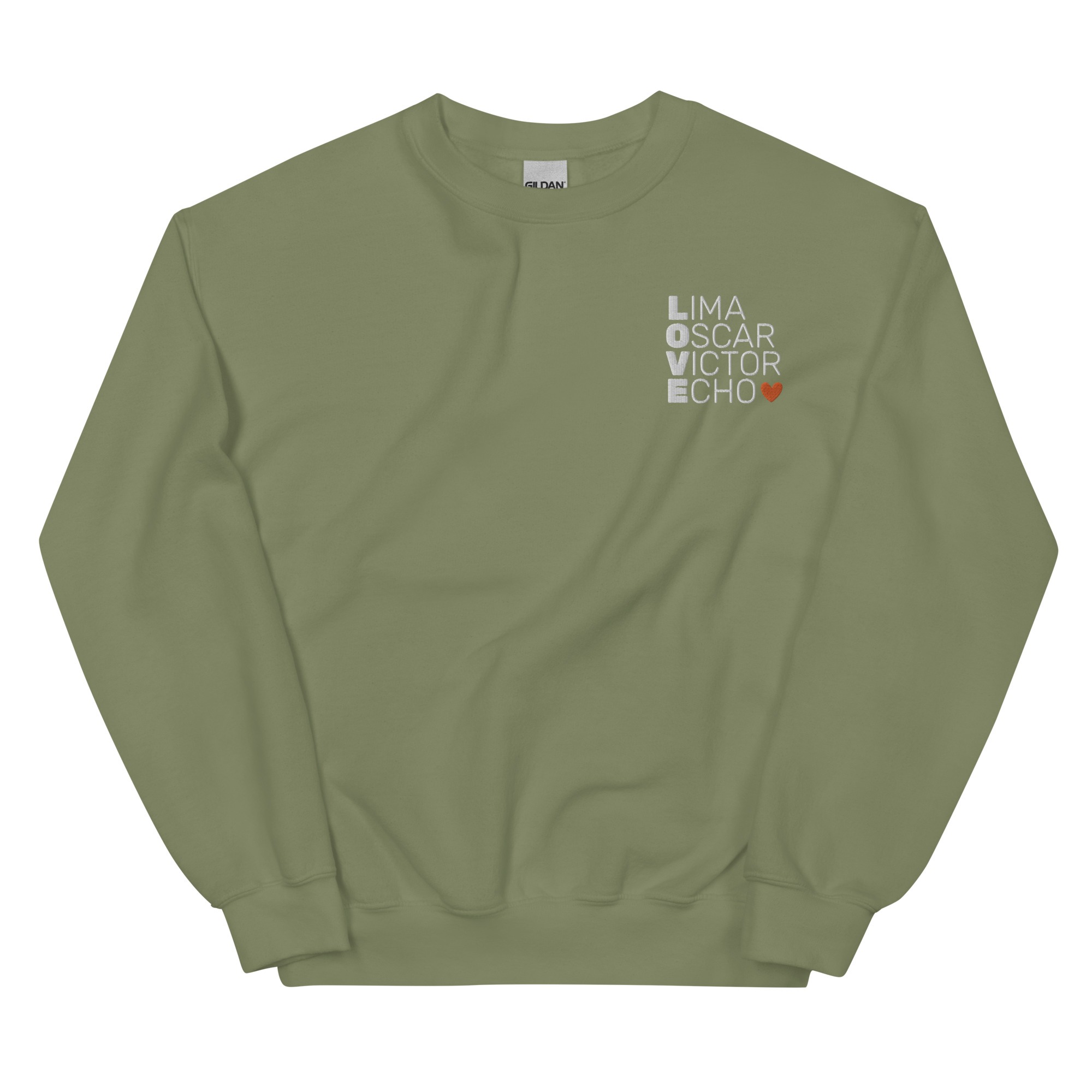 Show love for your service member with our military style Valentine’s Day LOVE sweatshirt. Graphic is embroidered.